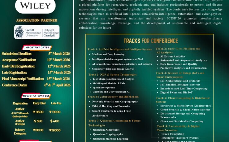 International Conference on Intelligent Systems and Digital Transformation (ICISD’26) We are pleased to announce the Call for Papers for the International Conference on